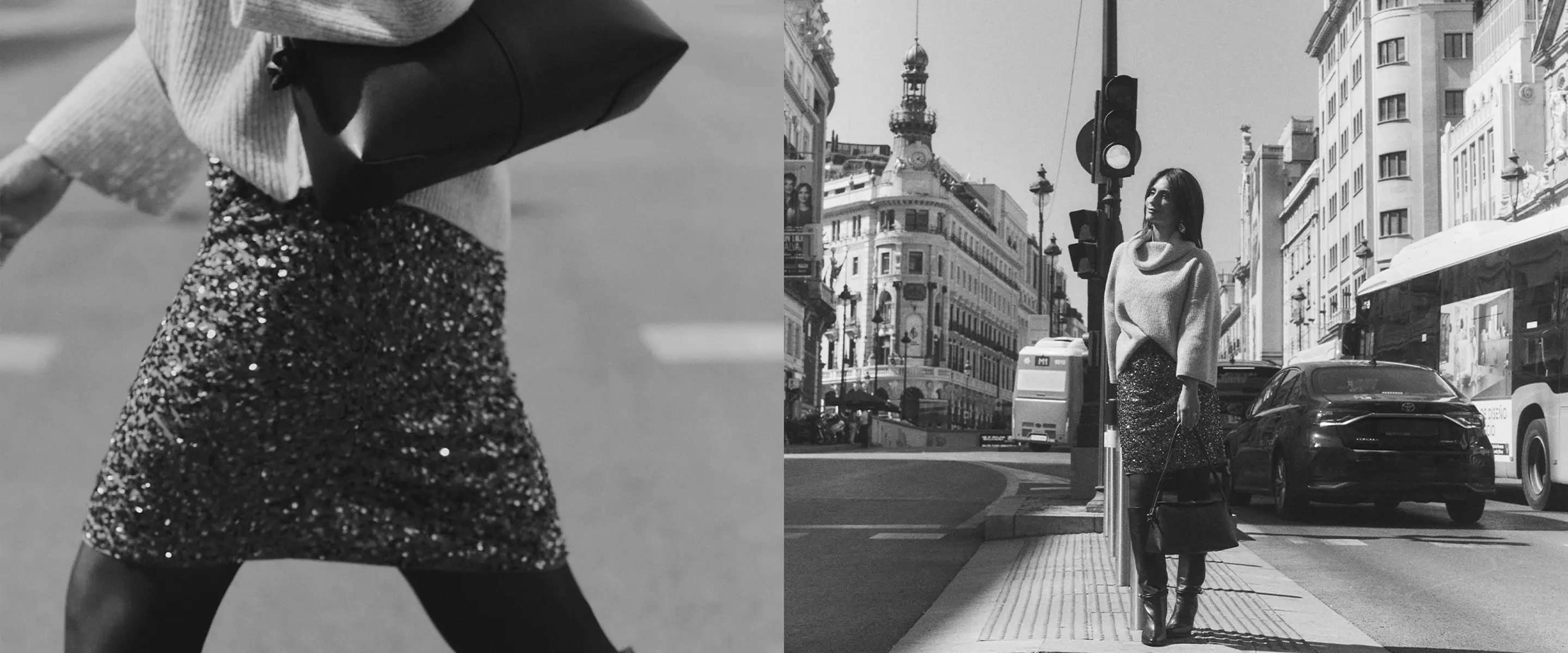 Vom Spaziergang durch Madrid bis zum Dinner mit Freunden – diese Looks funktionieren überall. Weiche Knitwear trifft auf strukturierte Tailoring-Pieces, kombiniert mit minimalistischen Accessoires. Casual am Tag, elegant am Abend.